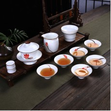 艺创 定窑白瓷手绘胭红整套功夫茶具陶瓷 盖碗 茶杯套组